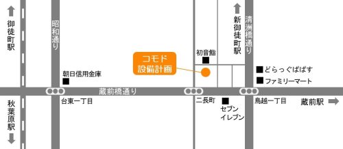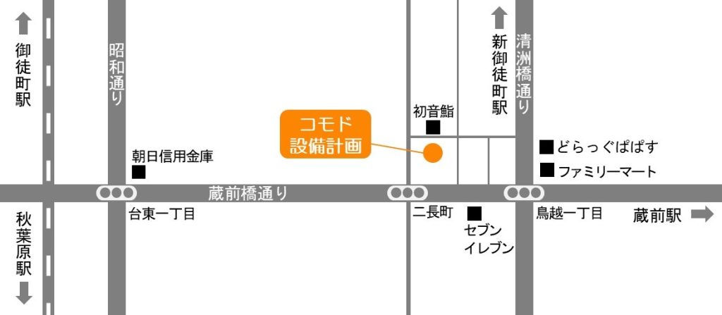 〒110-0016 東京都台東区台東2-3-9 KHビル 7F TEL:03-5829-8408FAX:03-5829-8409 【JR 御徒町駅 南口】より徒歩 15分【JR 秋葉原駅 昭和通り口】より徒歩 15分【都営大江戸線 つくばエクスプレス 新御徒町駅 A2出口】より徒歩 10分【都営浅草線 都営大江戸線 蔵前駅 A1・A3出口】より徒歩 15分 Map